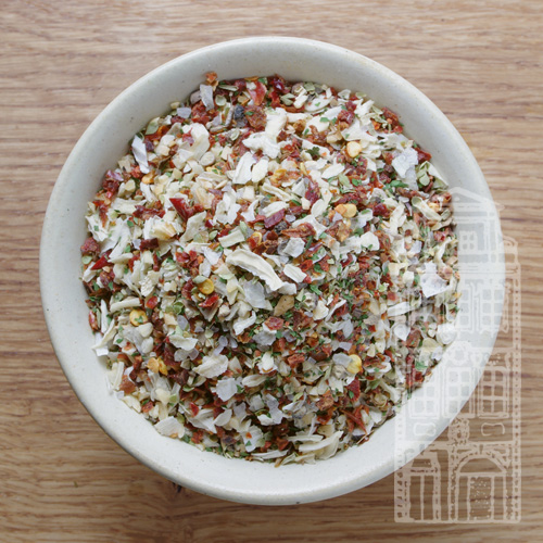 Středně ostrá hrubá směs na těstoviny. Doporučujeme k přípravě italských těstovin spaghetti aglio, olio e peperoncini. Směsí je možné ochutit i grilovanou zeleninu, vaječné pokrmy nebo ozdobit zeleninový salát.